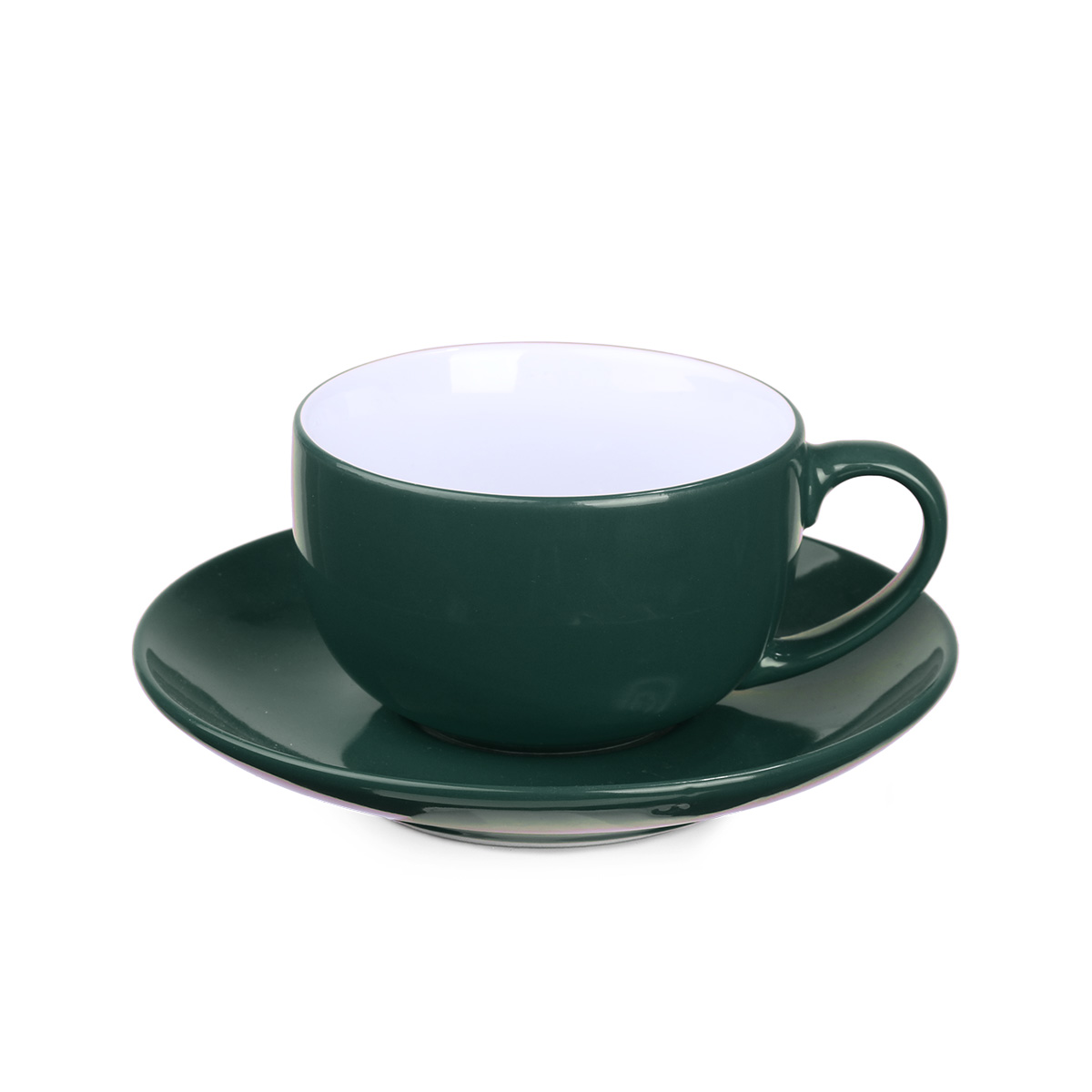 Porcelanowa filiżanka reklamowa z kolorowym szkliwem na zewnątrz i białym wnętrzem. Fason dostępny w wielu wersjach kolorystycznych.